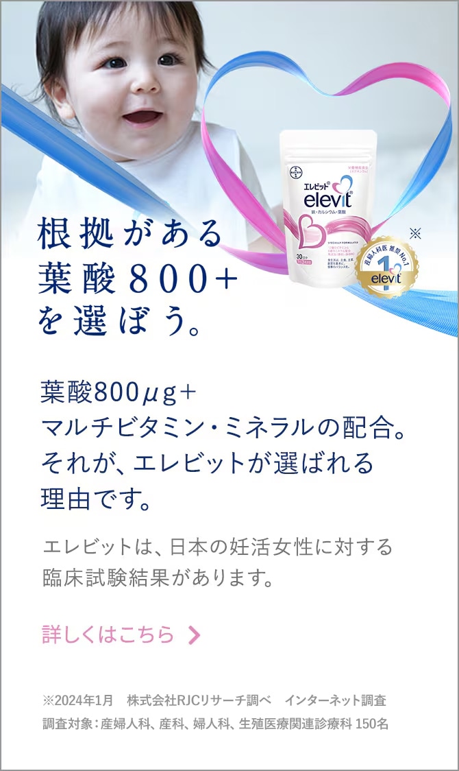 エレビットには、葉酸800μgや葉酸の代謝のはたらきを助けるビタミンB6とB12をはじめ、妊活・妊娠中に必要な18種類のビタミンとミネラルがバランスよく配合されています。